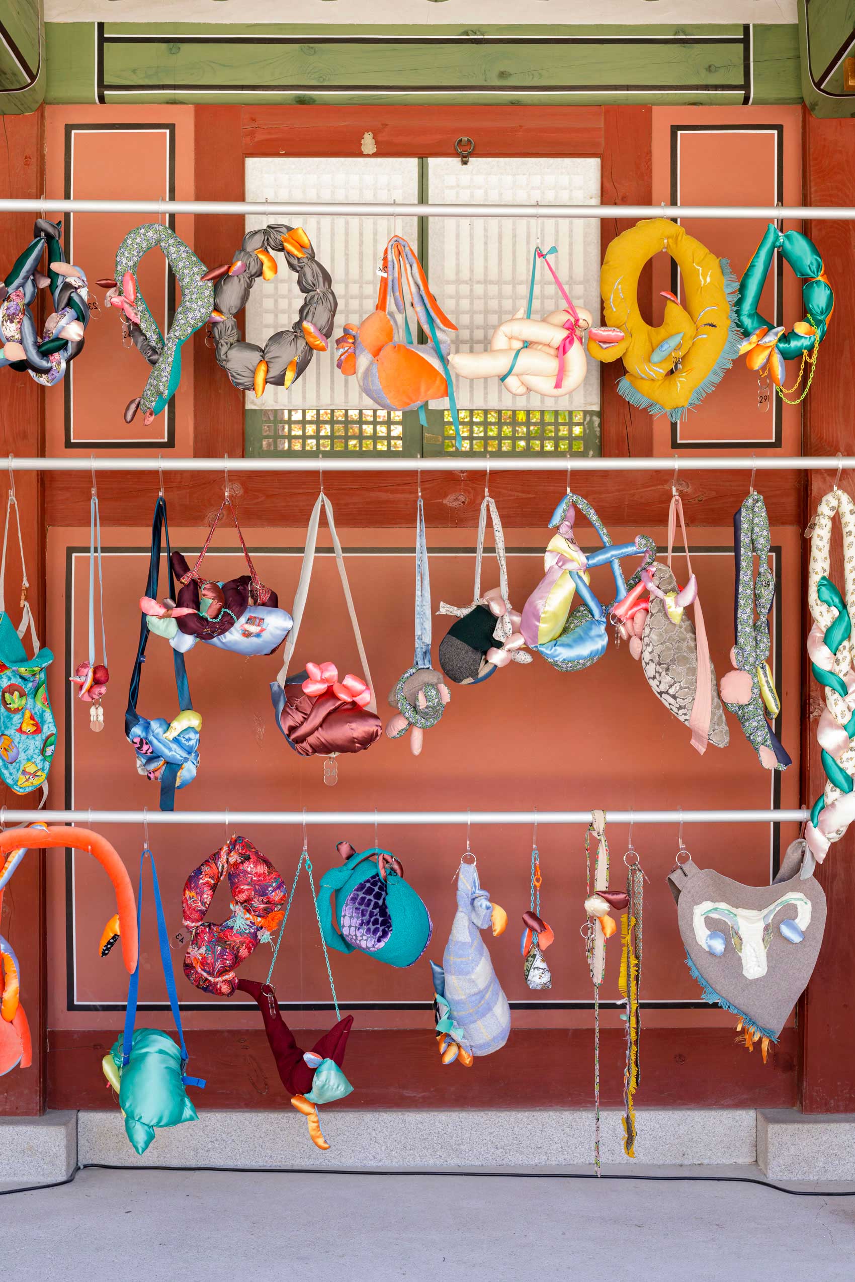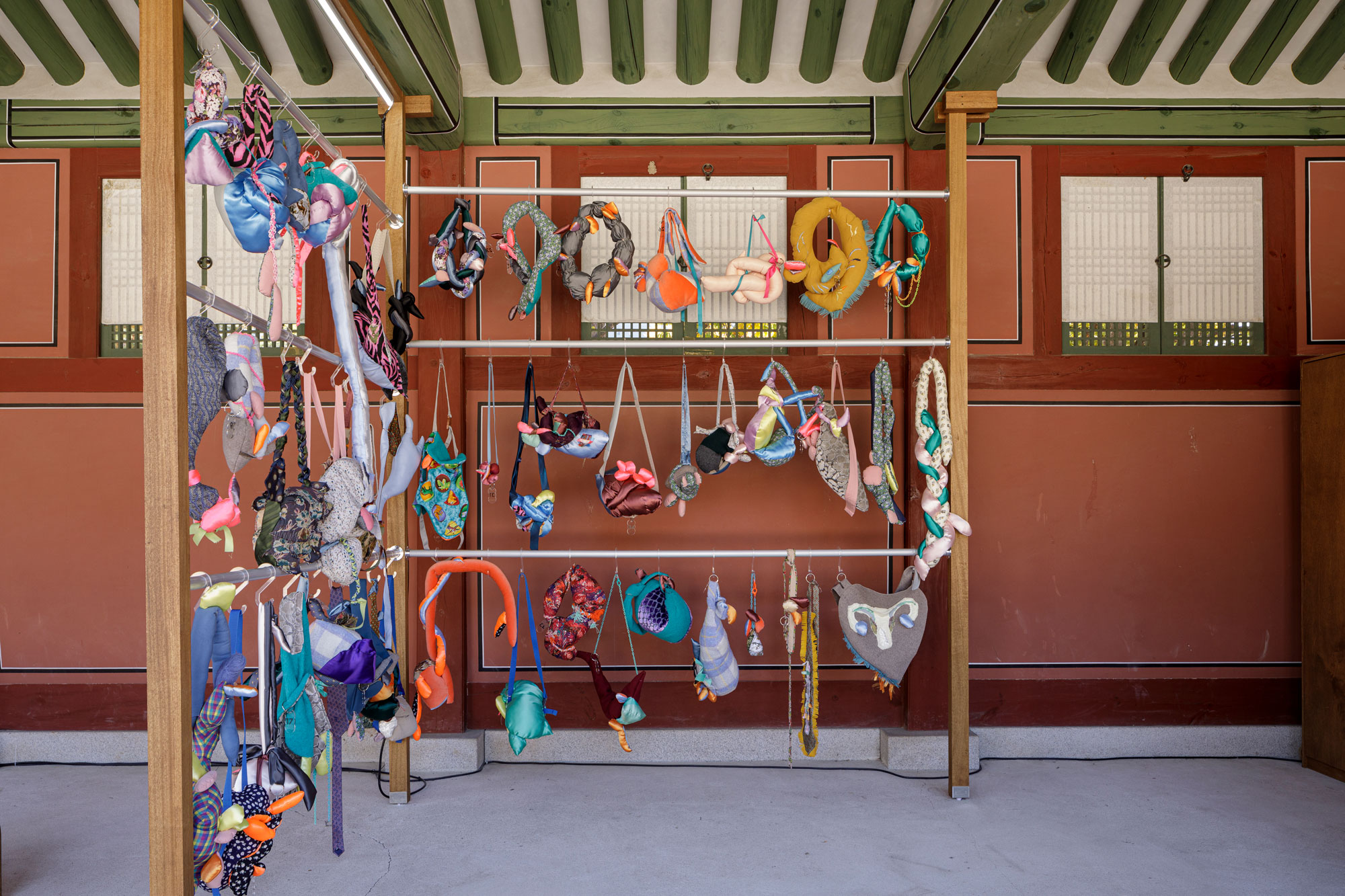 The newly commissioned works displayed primarily in the outdoor courtyards echo the geographical and historical features of Deoksugung Palace. These works include Koo Donghee’s installation which will float on the Deoksugung Pond; Choi Goen’s reenactment of the palace interiors in the form of a pagoda; Jung Jihyun’s stone diorama of an imaginary animal inspired by haetae;