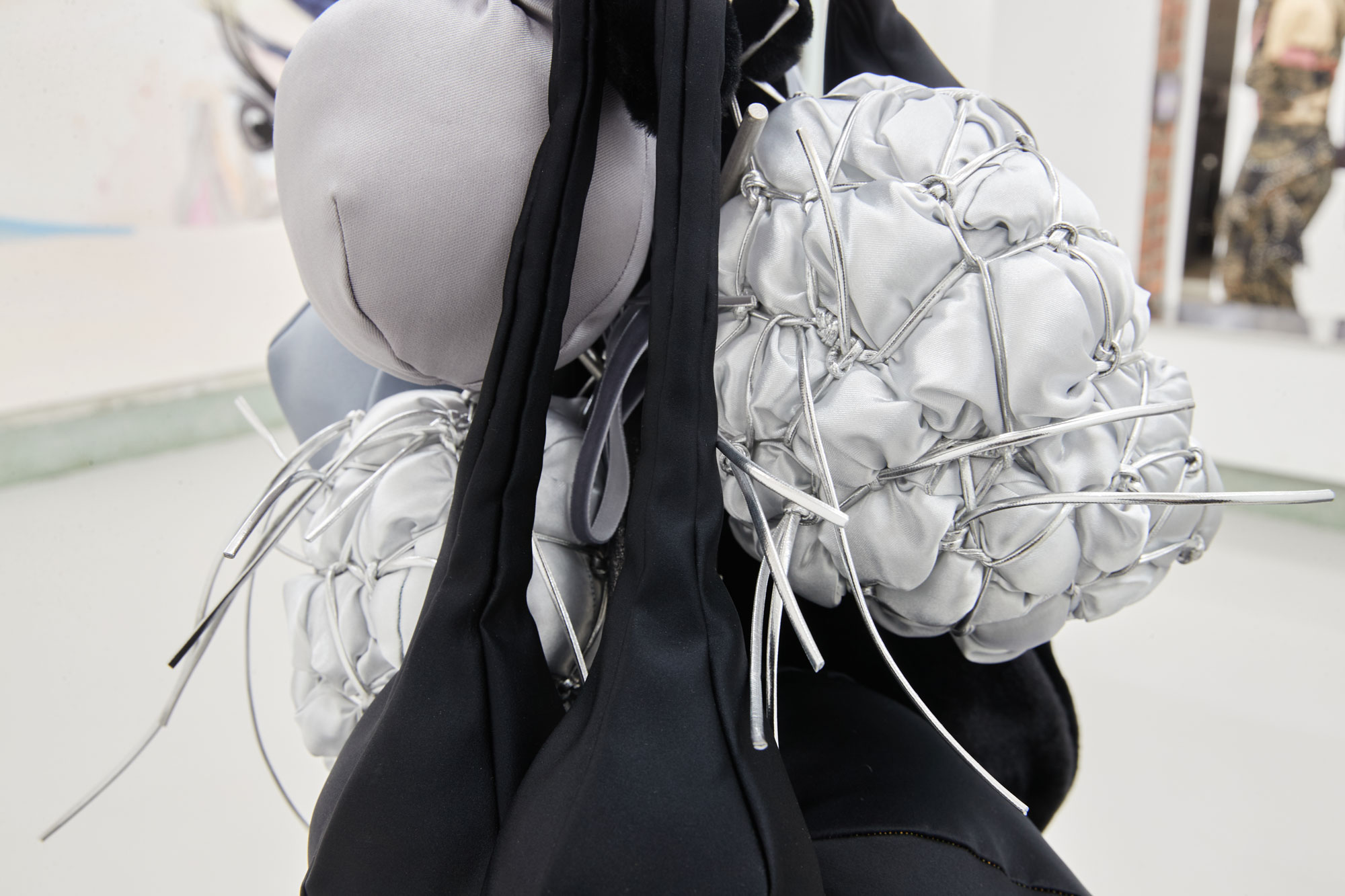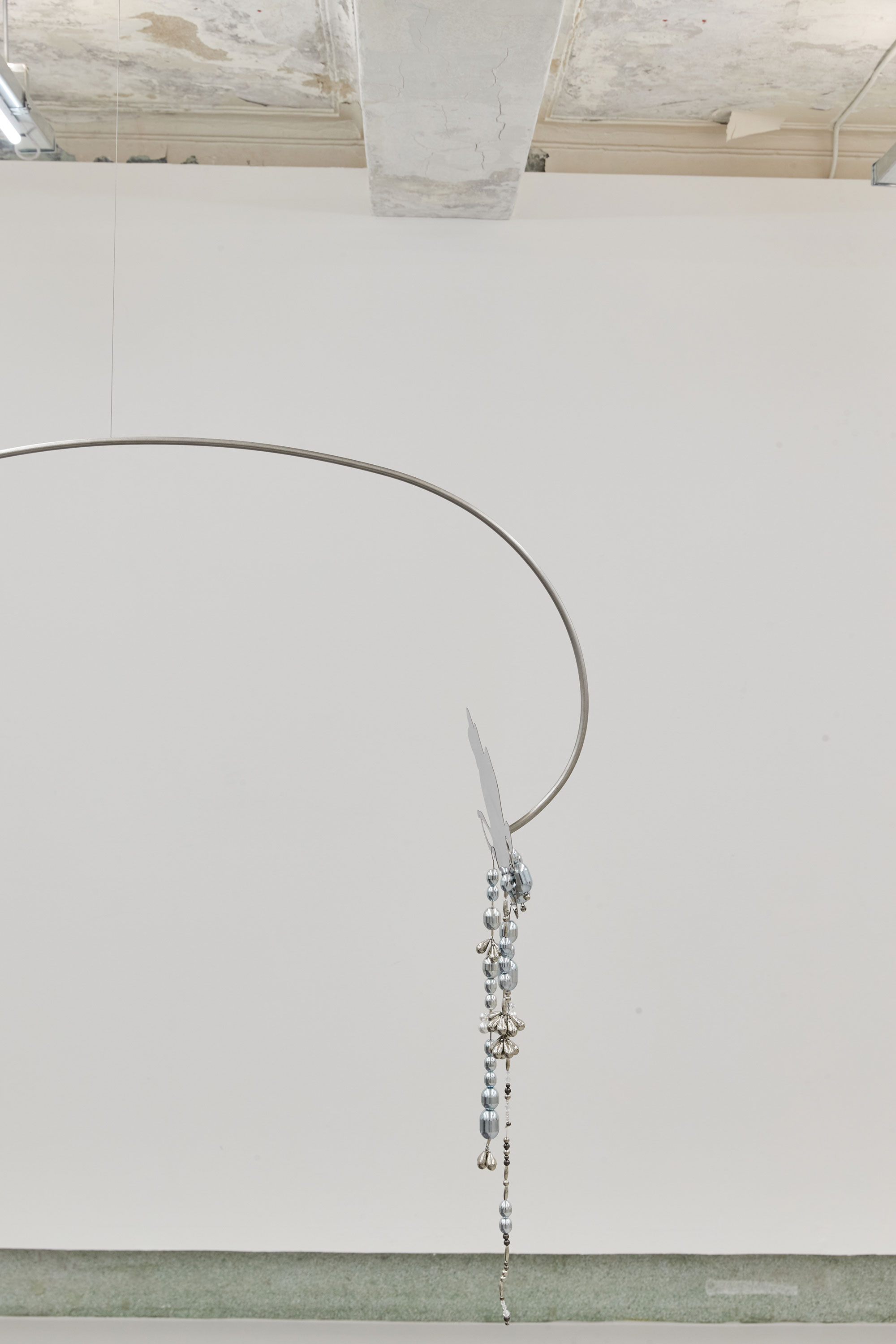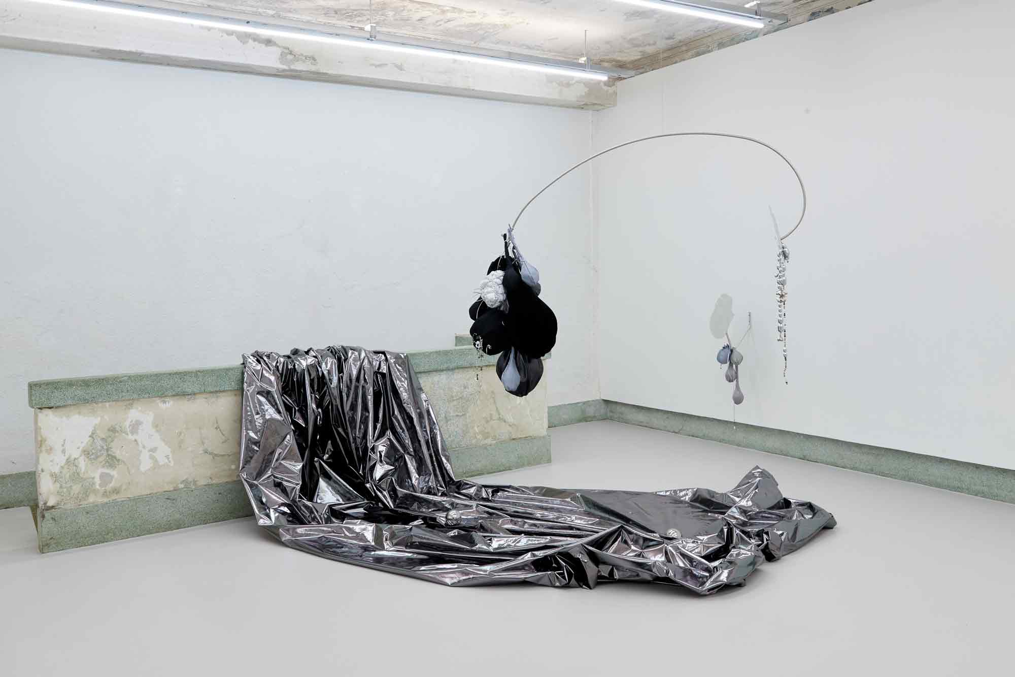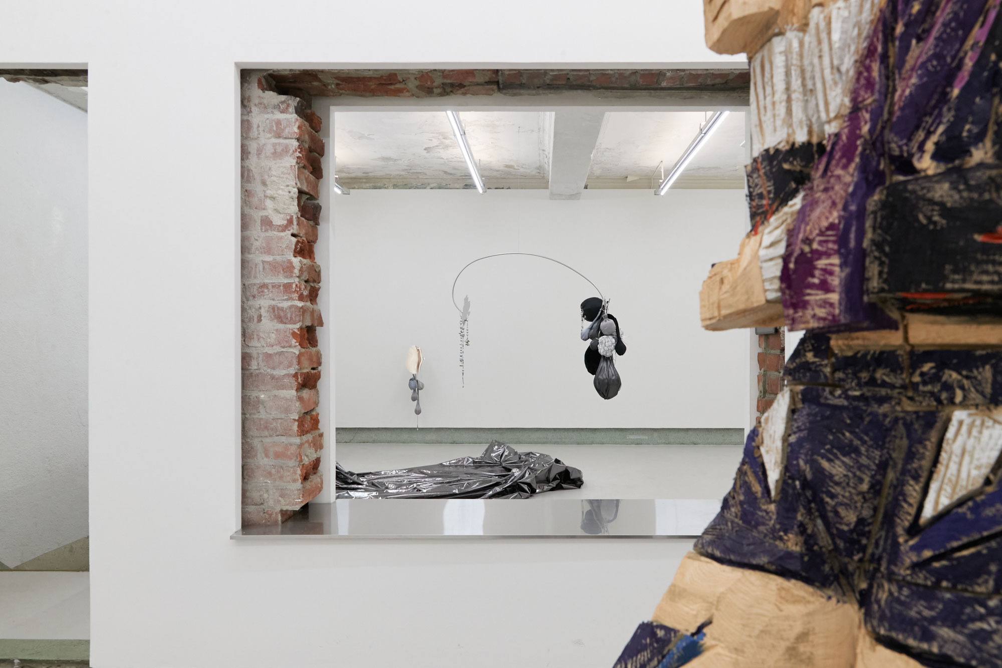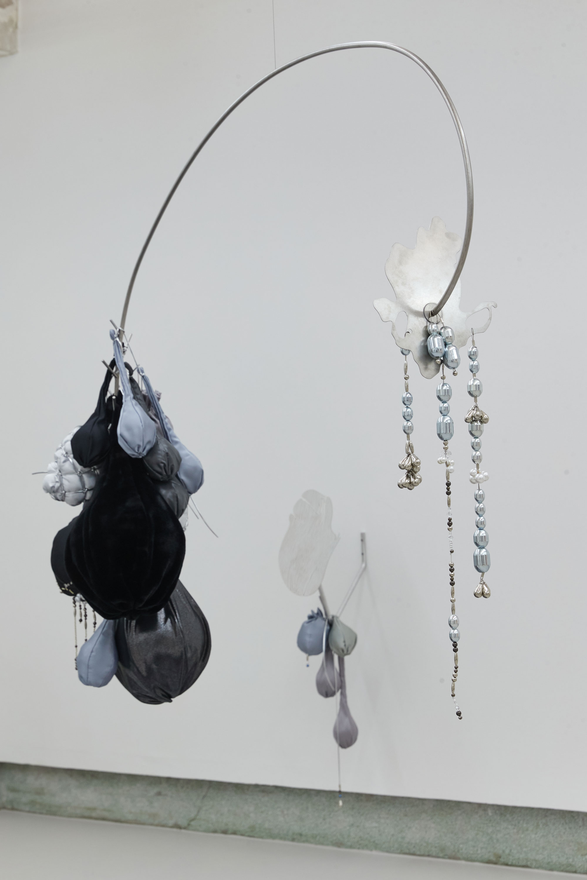 우한나는 모빌 구조의 설치 조각 (Floating Well, 2022)을 시도하므로 작업에서 안고 가야하는 양가적인 조건들의 동등한 상태에서 내적 갈등이 필연적으로 따라올 수 밖에 없는 작가의 숙명에 대해 이야기한다. 이성과 감성, 좌뇌적 사고와 우뇌적 사고의 영역에 생각들을 토스하는 과정에서 선택의 순간들이 축적되면서, 그것이 곧 자아 혹은 알터 에고의 모양새를 만들어낸다. 그리하여, 양극단에서 고민하는 수많은 자아들은 자신을 투영하는 신체기관 혹은 양성의 신체를 떠오르게 하는 구조로 구현하면서 본능적으로 서로 비등해야만 한다는 관성같은 것에 놓이게 된다. 결국에는 작가가 처한 자기 모순의 과정들은 신체로부터 파생된 각기 다른 형태와 무게의 부산물에 의해 즉흥적으로 포착한 실루엣의 거울과 마주보면서 투영된다. 반면에, 작가가 납득의 시간들을 거치기 위해 고민하는 행위 자체가 균형을 만들어가는 과정임을 스스로 받아들이는 순간에, 우한나의 시선은 객관화되어 오롯이 자신과 관객의 상만 담을 수 있는 거울 부조 조각(See Me Again, 2022)과 마주하게 된다. 모양자로 아무것도 지칭하지 않는 외곽선을 여러 차례 긋고, 수정을 통해 우연치 않게 만들어낸 심장 모양의 거울 조각은 우리의 의식 깊숙이 고정된 페르소나와 변화할 수 밖에 없는 자아들을 들여다보도록 한다(Show You, 2022). 본 전시에서 기존 작업과 화려하게 사용되었던 색을 제거하고 다양한 천의 질감과 광도에 집중한 무채색 덩어리의 표면은, 그간 미숙하고 시끄러웠던 오합지졸의 미묘한 차이들을 더 명징하게 들여다볼 수 있도록 한다.