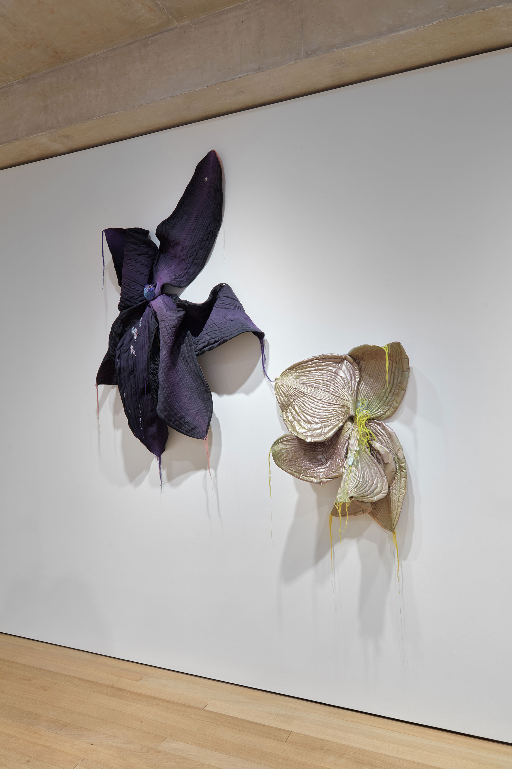Represented by G Gallery in Seoul, South Korea, Woo is known for using fabric to create fantastical and mythical worlds in visual forms such as drawing, sculpture, and installation. Her use of fabric, a material conventionally associated with femininity and manual labor, subverts the traditional grandeur of sculpture and offers a new perspective on the medium: passivity and flexibility. Fabric cannot be completely broken or destroyed, and if damaged, it can be repaired. Her subversive attitude towards the masculinity represented by sculptures is particularly evident in the way her installations suspend the fabric in midair, allowing it to sag. The fabric, the sculpture, is unable to resist the effects of gravity and dangles helplessly instead, as if it has been hanged.