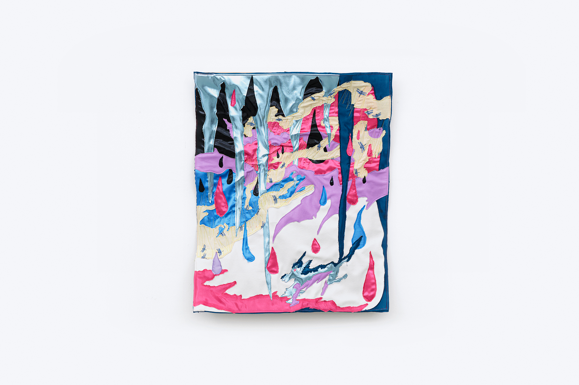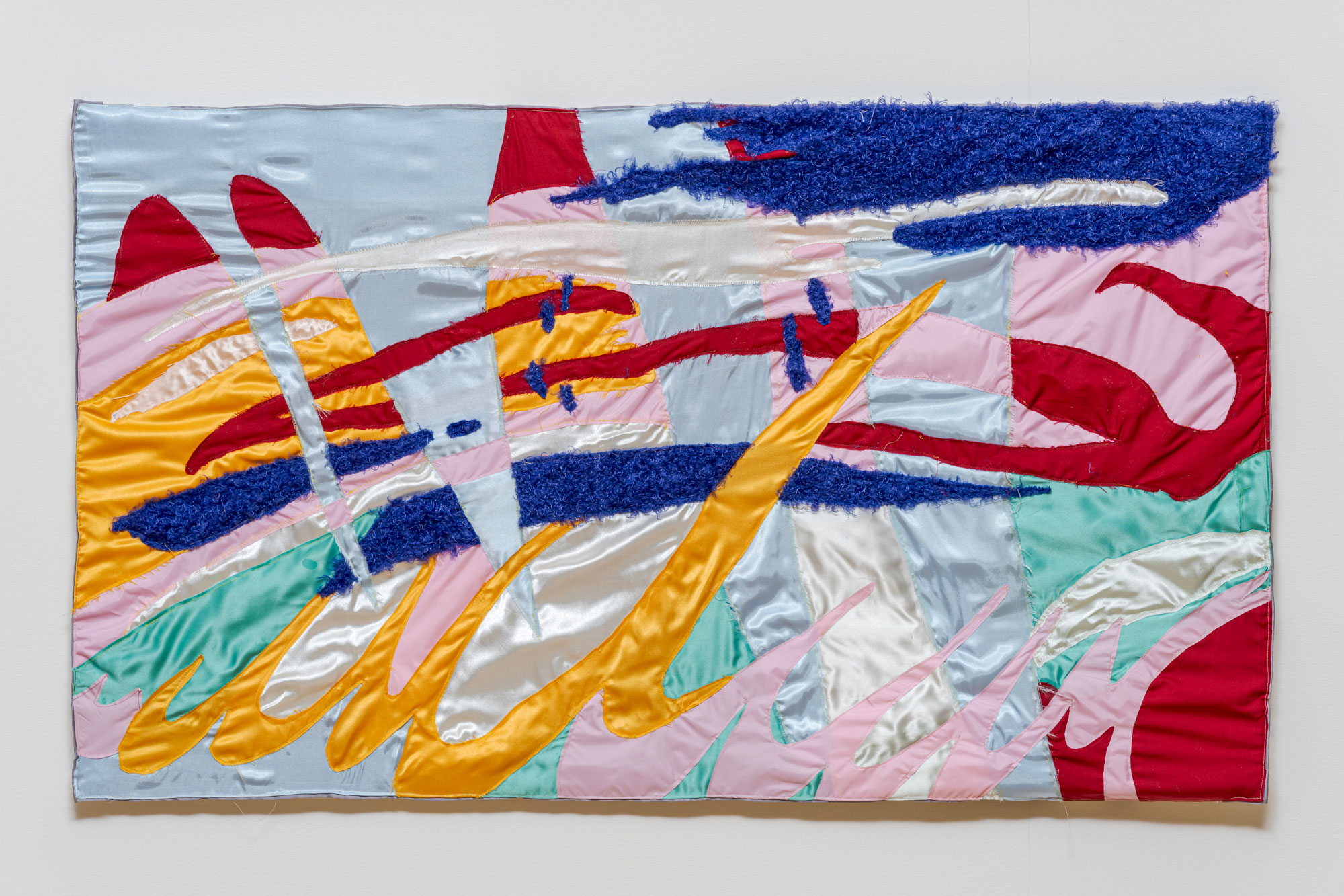 Punch drunk day, fabric on wood board, 65 x 110cm, 2022