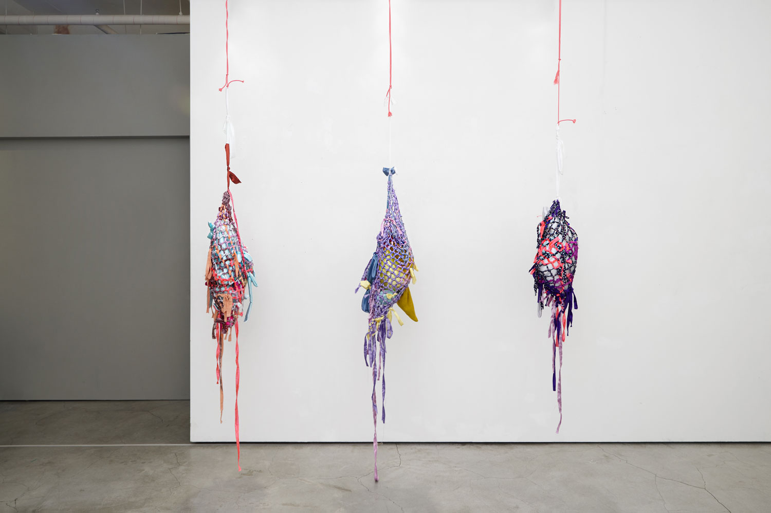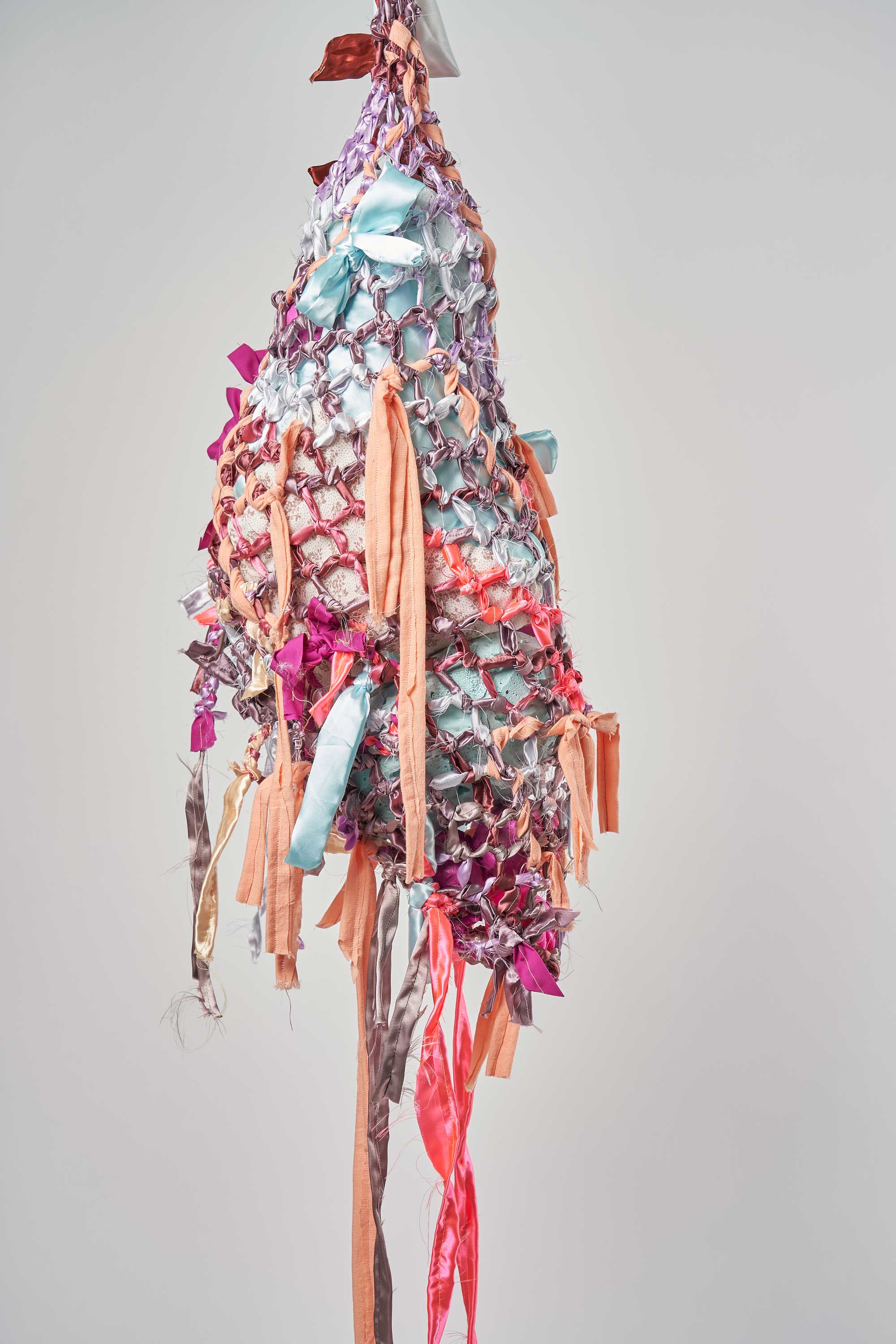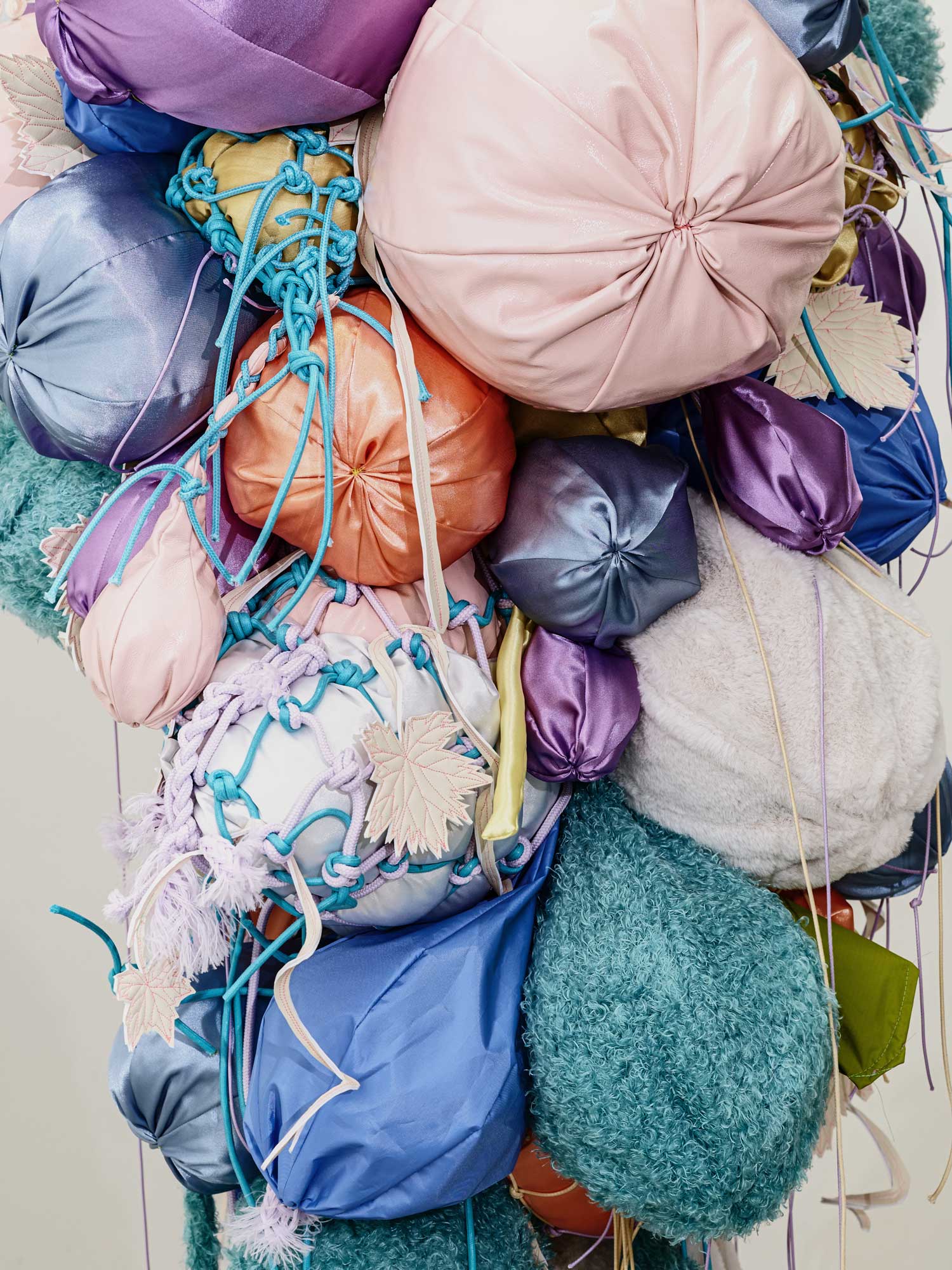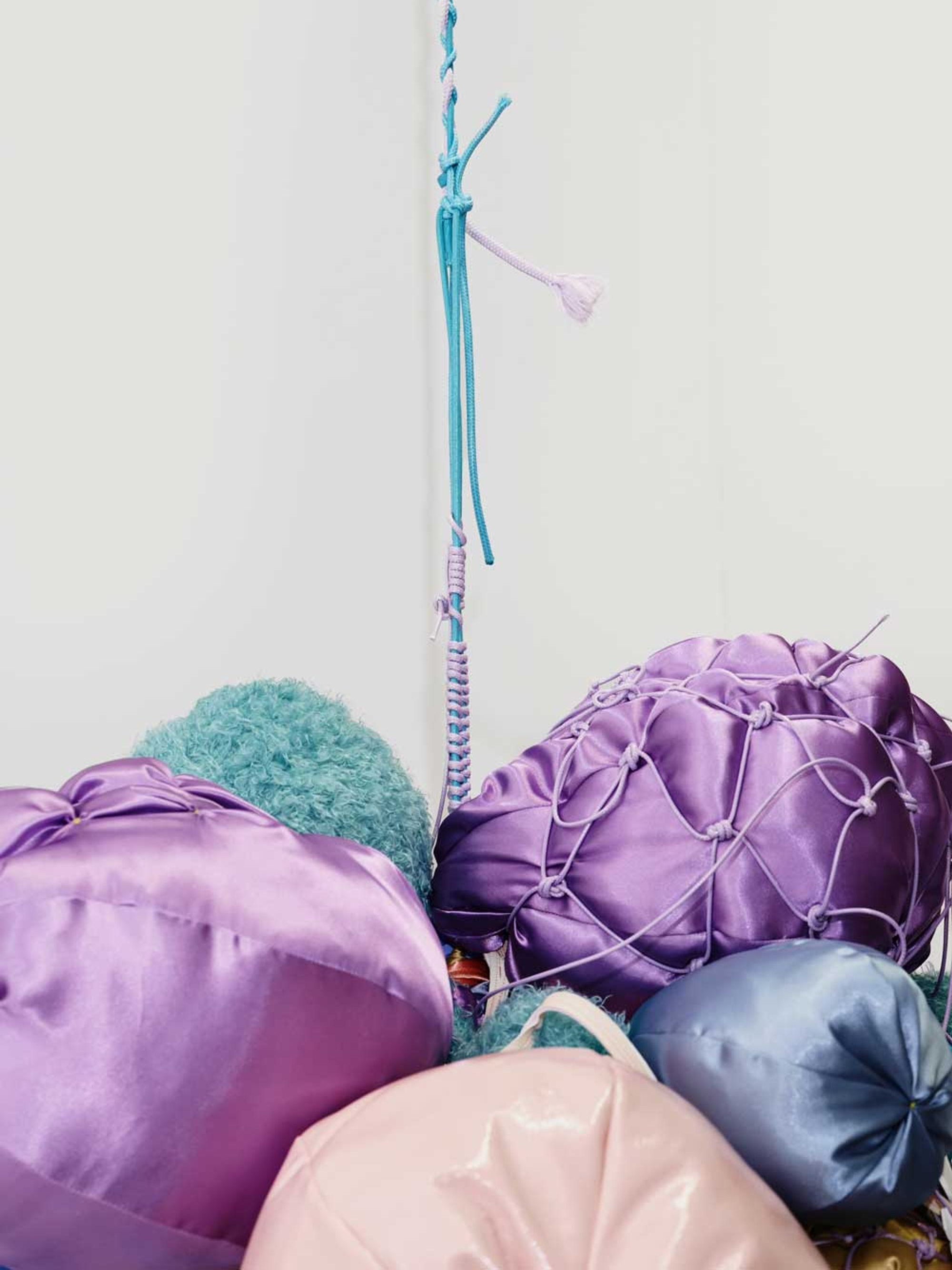 Abdomen: Grapes, fabric, string, cotton, bouncy balls, 120 x 73 x 74 cm, 2023