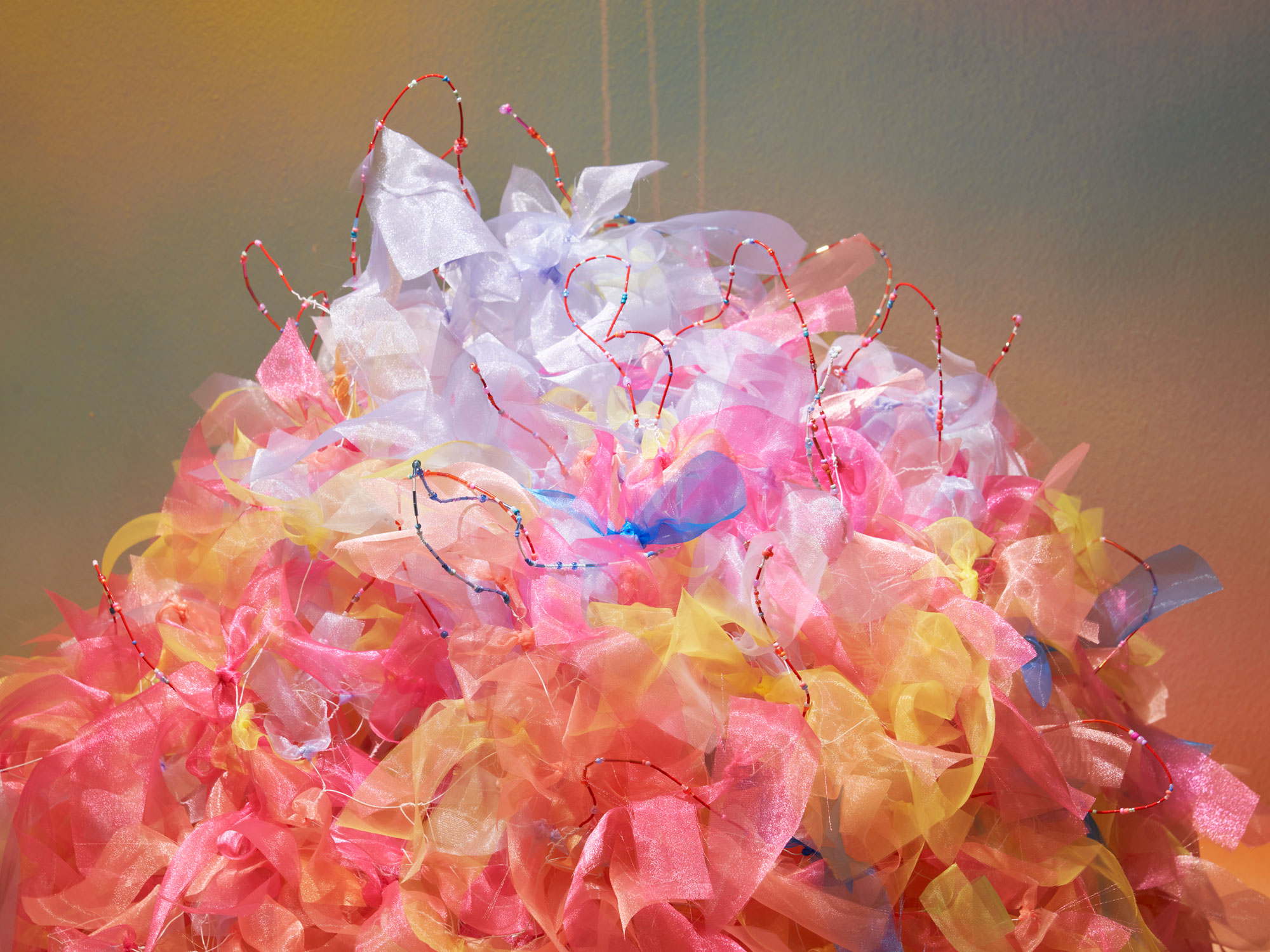 Grand Coolly, Aluminum, fabric, cotton, thread, beads, 265 x 337 x 104 cm, 2023